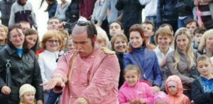 “I always recommend to people who want to do clowning, go out and street-perform. Once you can get people to stop on the street as a clown, you can do that anywhere. On the street, anything can happen, whereas on stage people are stuck in their seat. But when you’re on the street you have the magic of chaos. A pelican can swoop the hat off your head, or someone could throw something at you, someone can come and start picking a fight with you. Anything can happen. You learn to embrace chaos. You learn to embrace the unknown, the unexpected.”